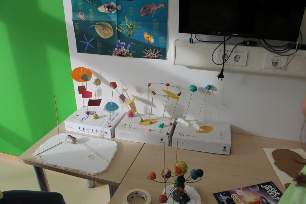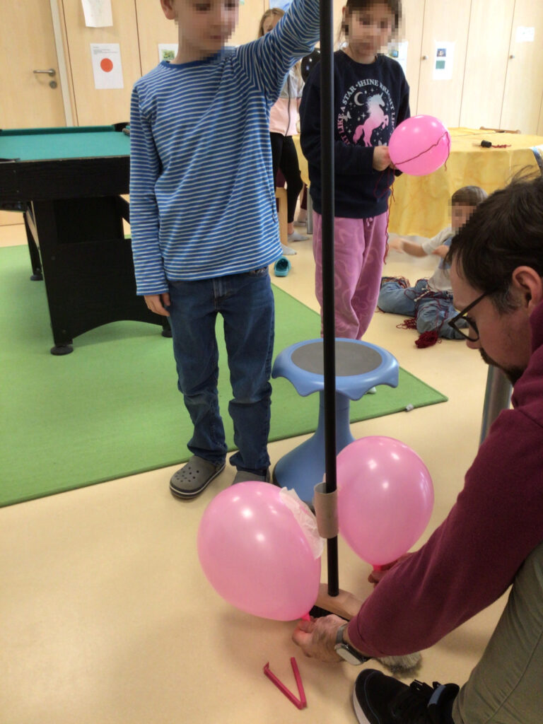 Im Hort findet regelmäßig die Forscher-AG statt. Die Kinder werden hierbei in ihren Lese- und MINT-Fähigkeiten (Mathematik, Informatik, Naturwissenschaften und Technik) gefördert. Zu Beginn jeder AG-Stunde wird ein Minibuch gefaltet und gelesen, dass zum Thema der AG hinführt. Danach bekommen die Kinder Arbeitsaufträge, bei denen sie los forschen können. In den ersten beiden AG-Termine ging es darum, dass die Kinder einen eigenen Raketenantrieb entwickeln und ein Modell unseres Sonnensystems bauen. Die Blitzkids bauten mit Luftballons ihre Raketen, die mit Hilfe von Besenstiel und Wolle auch in die gewünschte Richtung flogen. Auch mit Brausetabletten wurde experimentiert, in dem diese in einem Filmdöschen aufgelöst wurde und dieses durch den Druck explodierte. In der zweiten AG bastelten die Kinder Modelle unsere Sonnensystems. Vorher recherchierten sie die Daten über die Planeten mit Hilfe einer App auf dem Tablet, Büchern und dem Sonnensystemplakat im Forscherraum.
