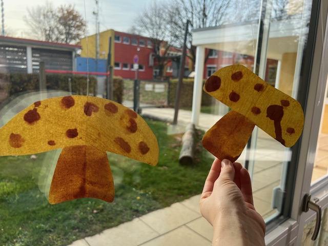 - Aus Papier einen Pilz ausschneiden